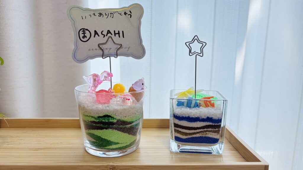 実は見本のサンドアートがテーブルから落ちてしまうハプニングも…!