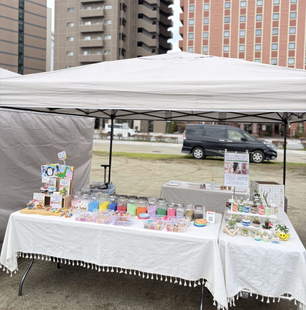 テントを広げての準備は少し大変ですが、やっぱり外での出店は特別です。